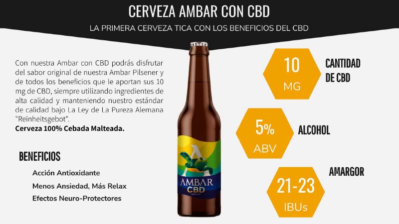 Nuestra Ambar con CBD podrás disfrutar del sabor original de nuestra Ambar Pilsener y de todos los beneficios que le aportan sus 10 mg de CBD, siempre utilizando ingredientes de alta calidad. 10mg CBD / ABV 5 / IBUs 20.